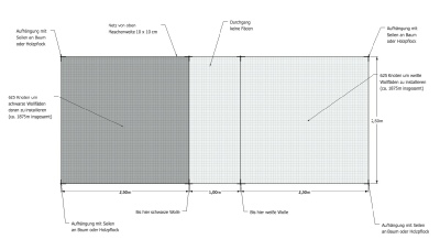 6 m x 2,5 m Maschenweite 10 x 10 cm Aufhängung in einer Höhe von 4 m