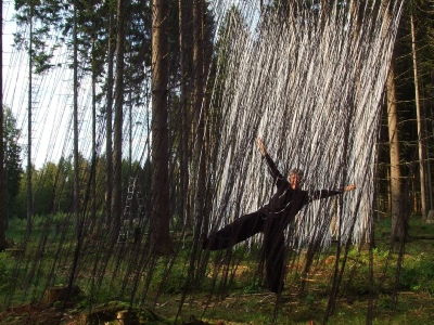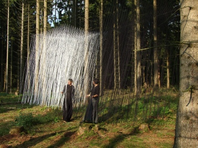Steht der Betrachter in dem Durchgang zwischen schwarzen und weißen Fäden. Es wird durch den Wind sehr anschaulich gezeigt wie unsere Emotionen durch uns selbst oder fremden Einflüsse gesteuert werden.