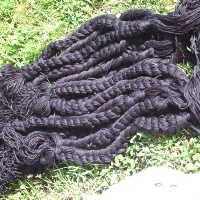 Erster Teil der Fläche von 2,5 m x 2,5 m werden pro Knotenpunkt schwarze Wollfäden angebracht.