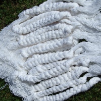 Zweiter Teil der Fläche von 2,5 m x 2,5 m werden pro Knotenpunkt weiße Wollfäden angebracht.