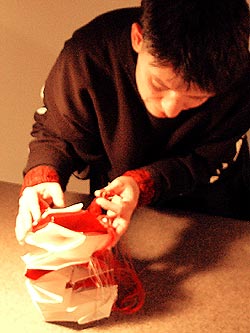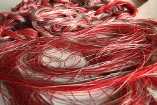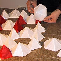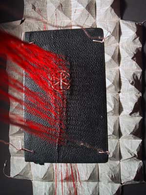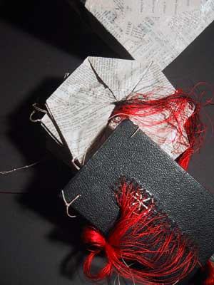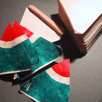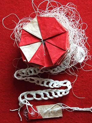 Bestehend aus Nepalpapier rot gefärbt und naturfarben.