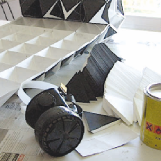 Erschwert wurde das ganze Projekt durch das ausgesuchte Material "Tyvek", dass sich nur mit lösungsmittelhaltigem Kleber dauerhaft und wetterfest verbinden läßt. Somit mußte ich beim kleben eine Gasmaske tragen die mir als Brillenträger äußerst lästig war.