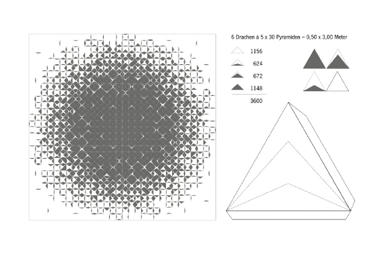 aus 900 Pyramiden mit ca. 14,4 km Leinen