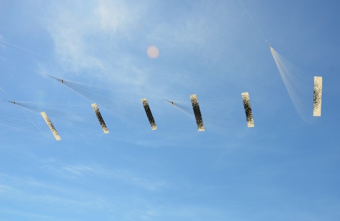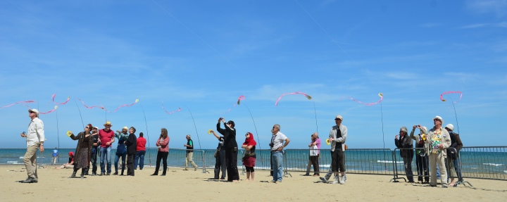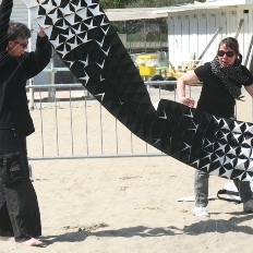 Ein wichtiger Teil dieses Objektes ist die Performance. Das aufbauen der Segel, auslegen der Schnüre und das steigen lassen läßt sich nur mühsam alleine bewerkstelligen. Auch spielt der Wind eine wichtige Rolle. Die Bilder sind bei der Erstaufführung, am 26. April 2012 in Cervia, Italien, entstanden bei optimalen Windverhältnissen und mit Hilfe einiger Freunde und Drachenbaukünstlern.