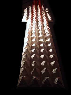 Bestehend aus Nepalpapier blau gefärbt, weißes japanisches Papier gelöchert.